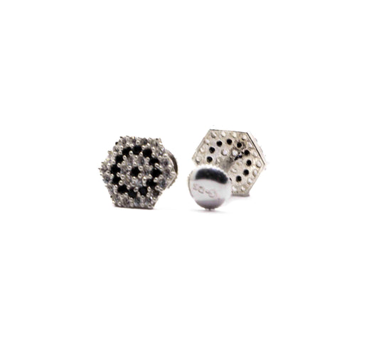 Studded Hexagon Black Silver 925 Studs