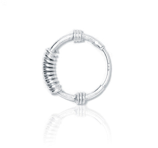 Silver Slim Bali Round Mens /Boys Earring