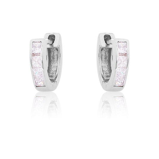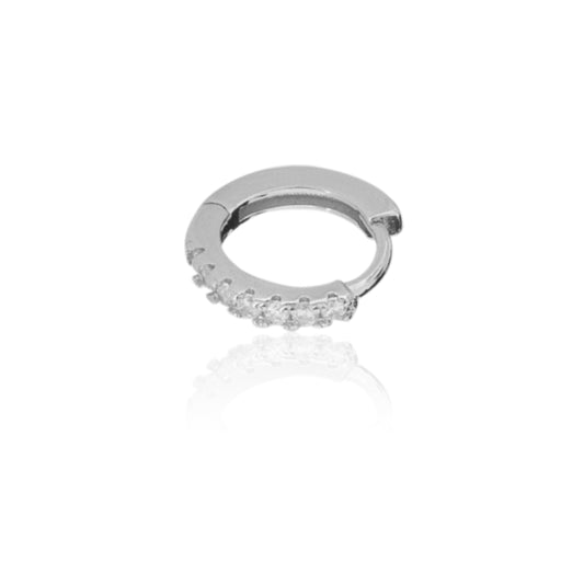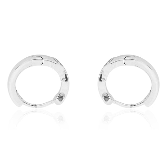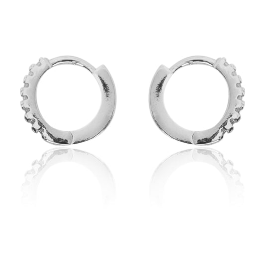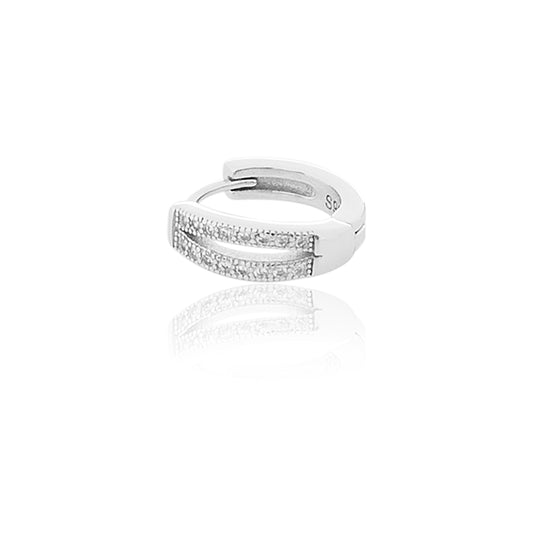 STERLING SILVER RHODIUM PLATED SINGLE LINE PAVE UNISEX HUGGIE HOOPS EARRING